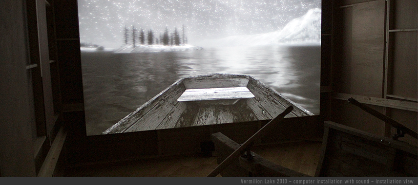 “Igloo, the collective comprising artists Ruth Gibson and Bruno Martelli, present Visitor, a new installation at the Apthorp Gallery, artsdepot, London. Based on their time in the wilds of Canada, they offer up a life-sized copy of a hunting cabin – complete with internal virtual environment – alongside a video piece called Where the bears are sleeping. As the artists explained to me, “By employing techniques used in videogames this work plays with our anticipation of different forms of reality revealing a presence in both worlds suggesting the hunter being hunted, the tracker being tracked.” The exhibition tours to the Djanogly Art Gallery, Nottingham, from 12 March, where the artists will give a talk on 16 March (6-7pm).